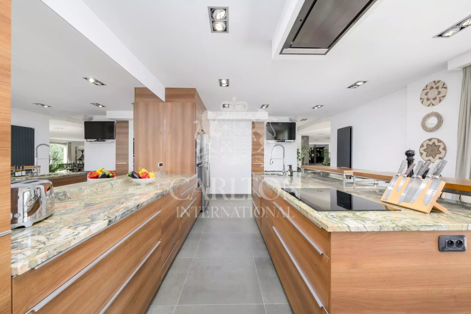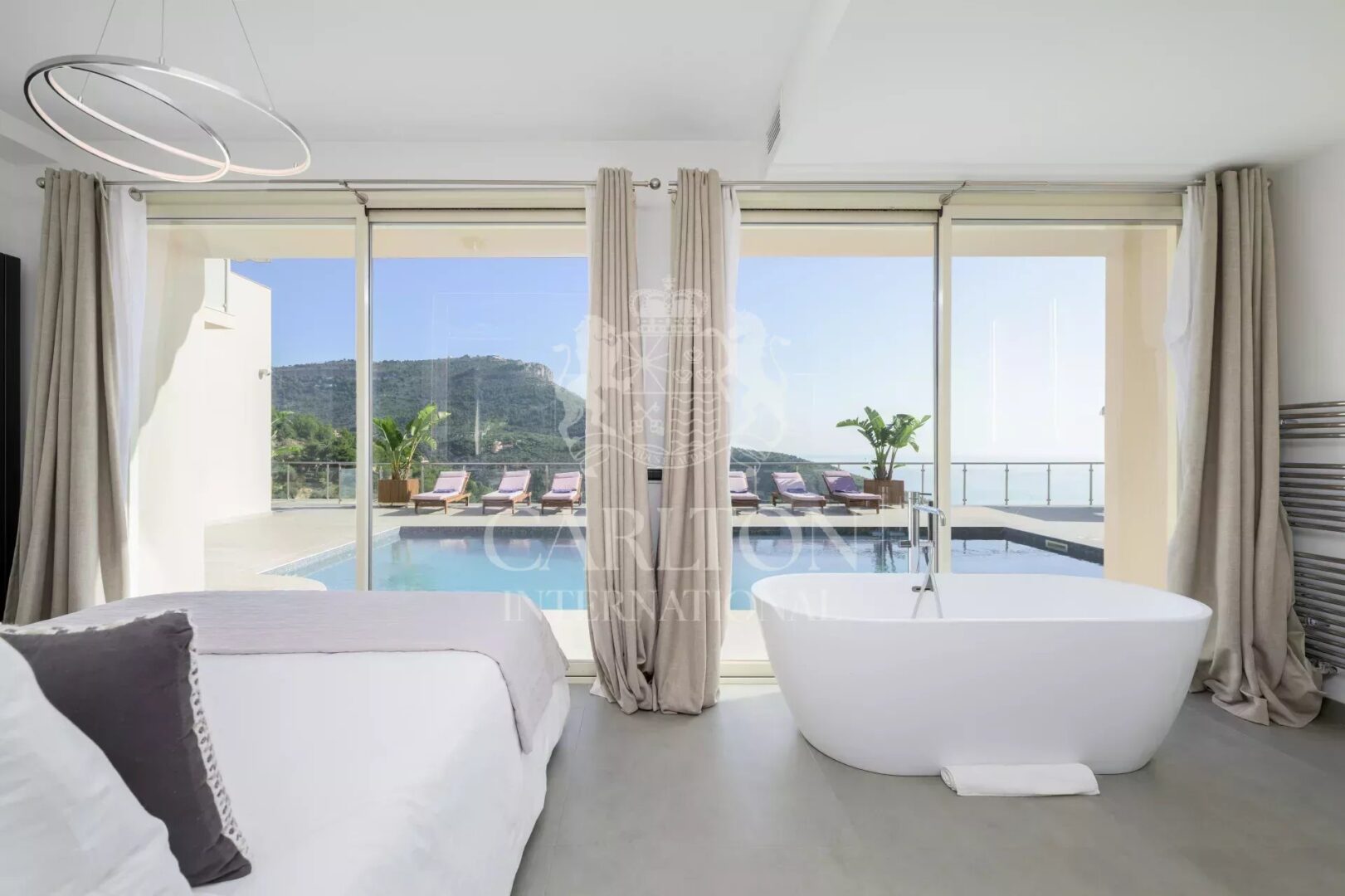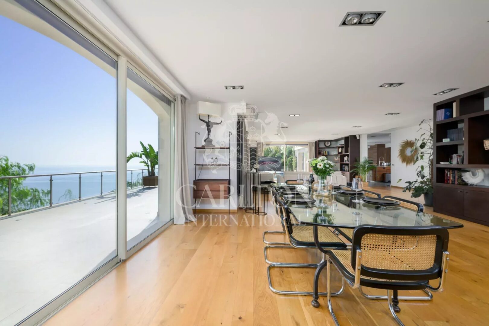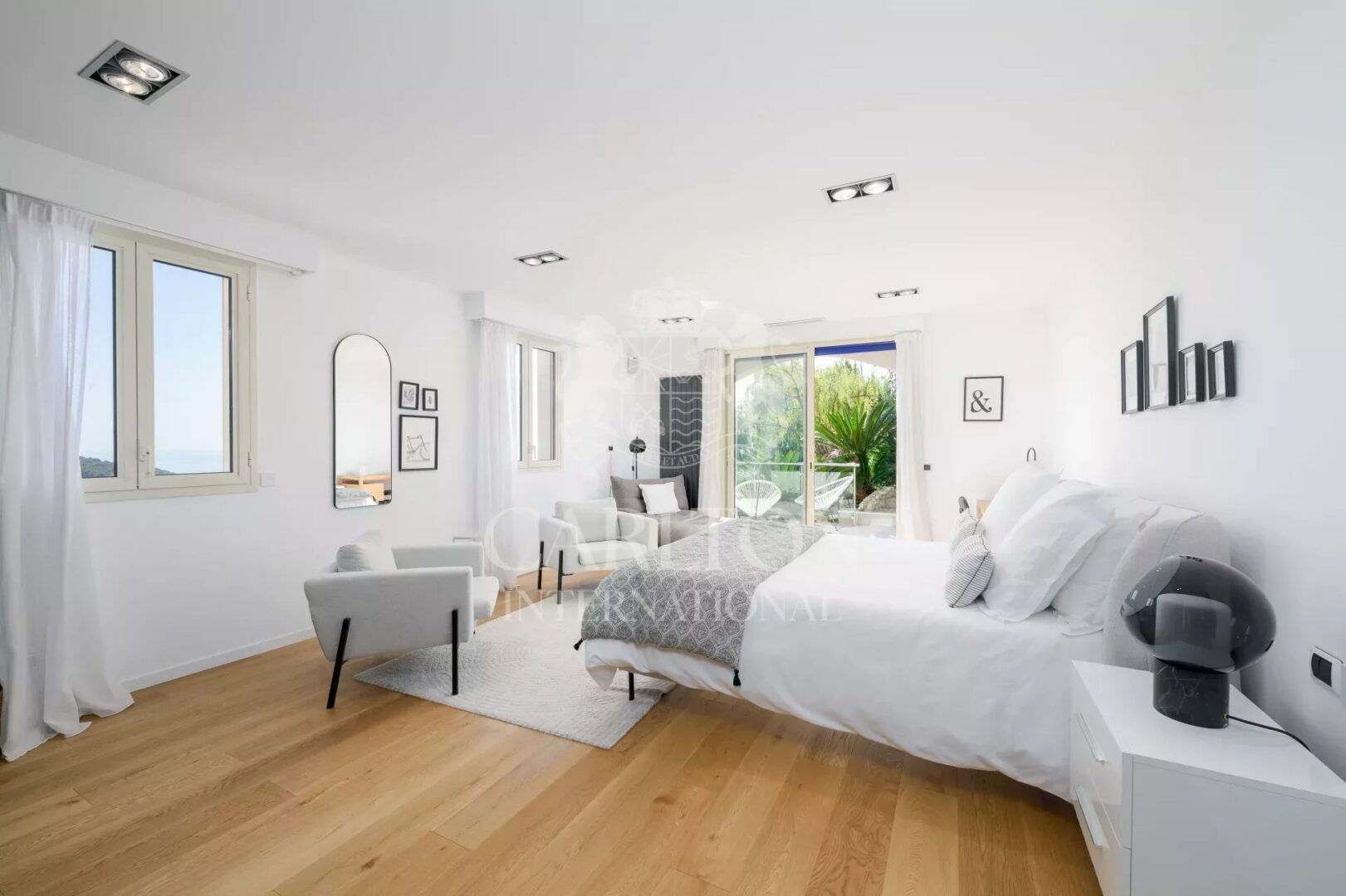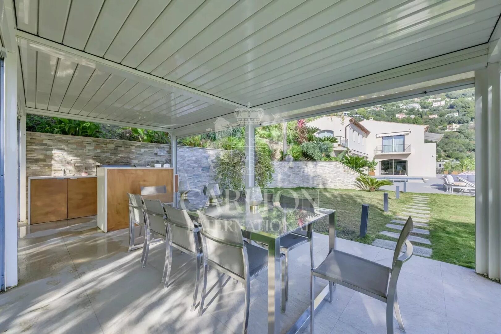 Outside, the beautifully landscaped Mediterranean garden surrounds a large heated mosaic swimming pool. A summer kitchen, discreetly nestled among the greenery, and a wide flat terrace offer the perfect setting for relaxation or entertaining — all with a stunning sea view as the backdrop.