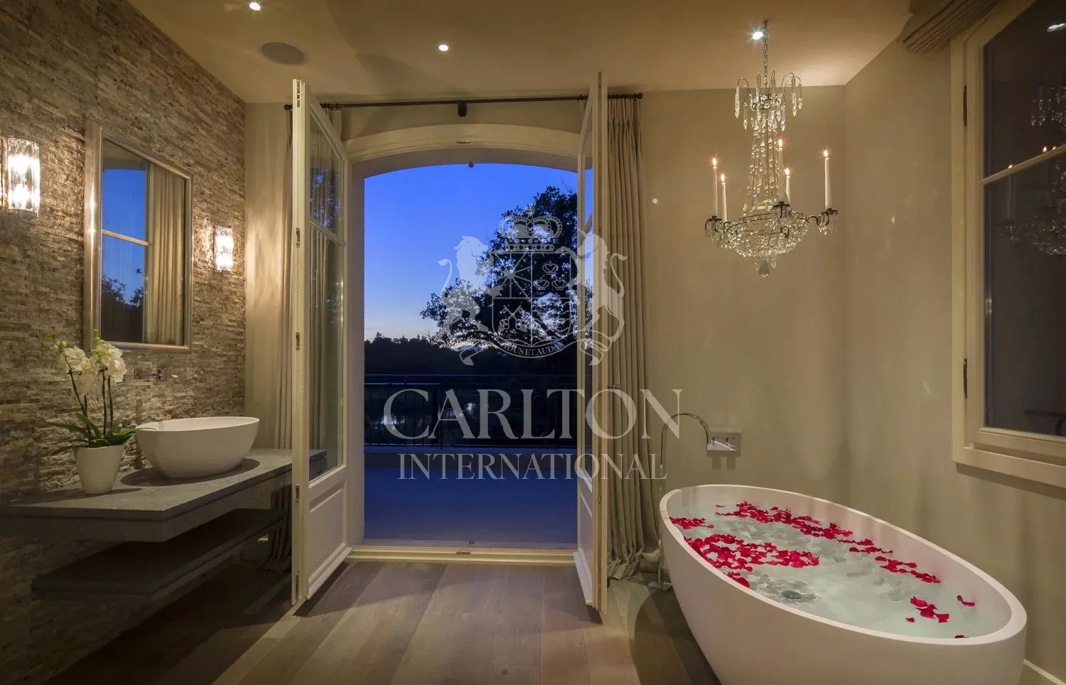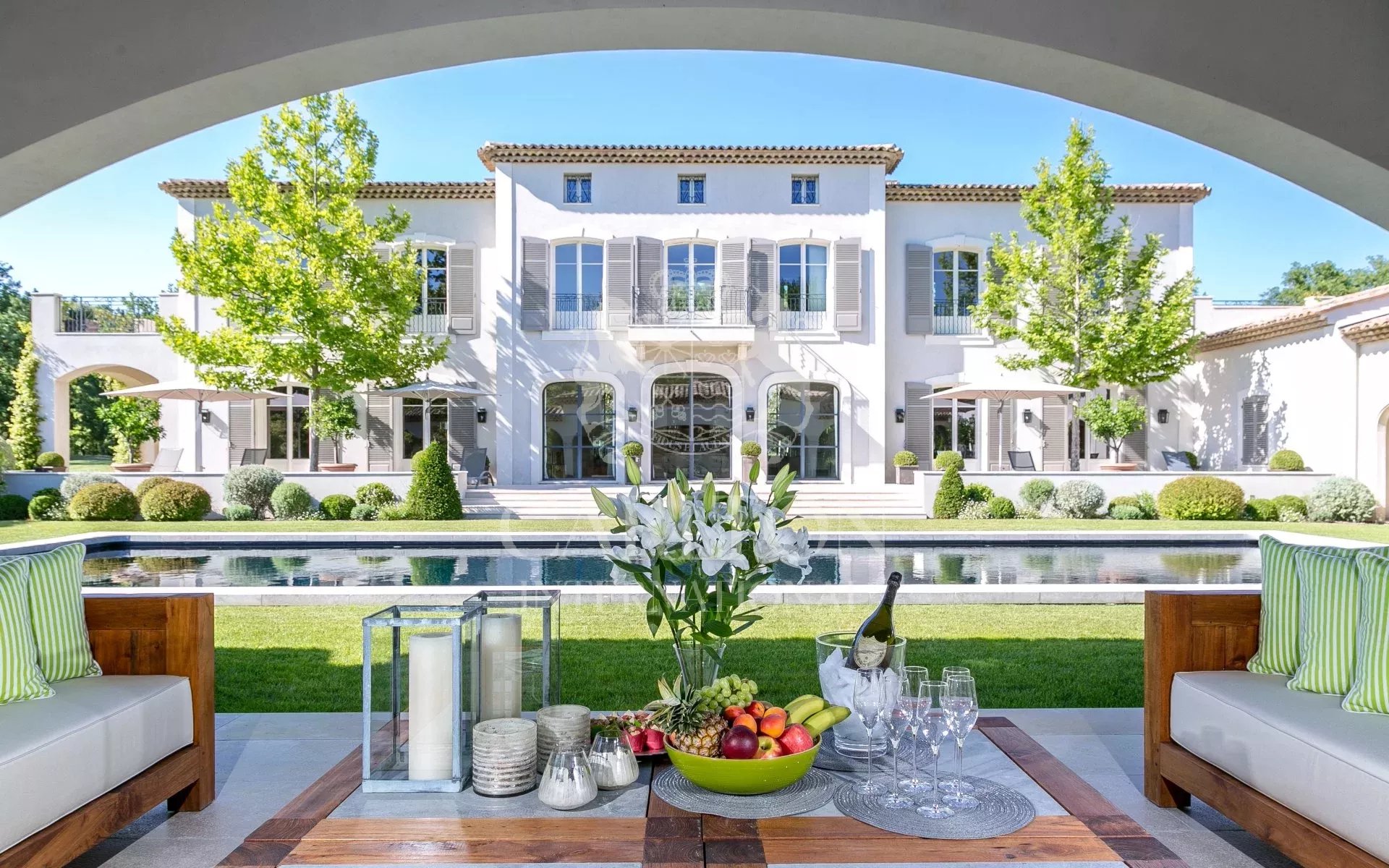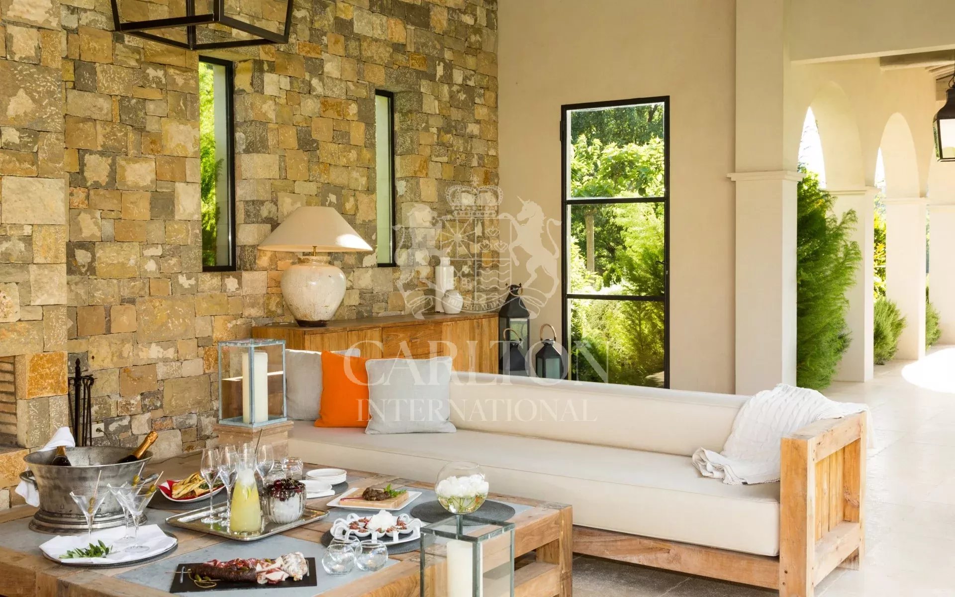 Accommodating up to 16 people, the main villa has 6 bedrooms with ensuite bathrooms of rare quality, and the guest house offers 2 additional ensuite bedrooms. The reception rooms open onto a living room, dining room and summer kitchen, which surrounds the heated swimming pool. In absolute peace and quiet, this luxurious villa enjoys a privileged location with unobstructed views and total privacy.