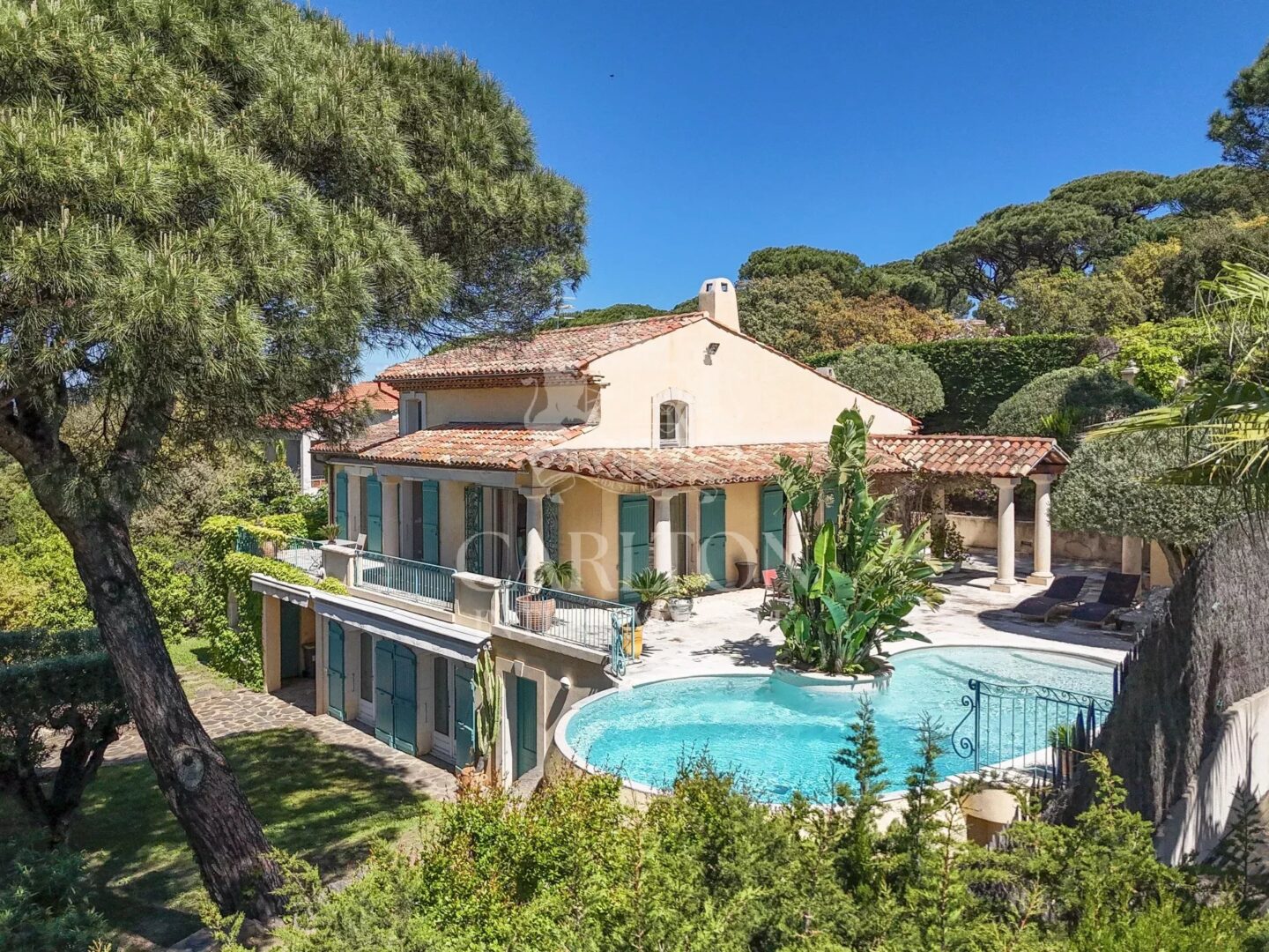 SAINT TROPEZ. In the “Pinet” area, neo-Provençal-style villa, five minutes from Place des Lices and Tahiti beaches, in a natural and very quiet environment, facing the “Château de la Messardière”